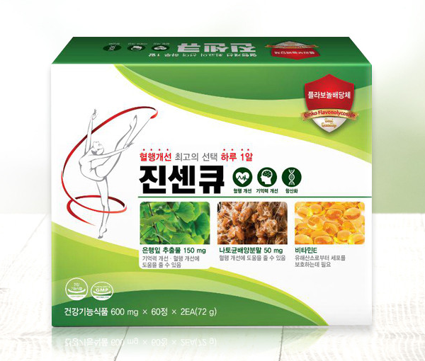 - 오늘의 주제이기도 하는 진센큐 또한 이러한 제품들 중 하나로서, 핵심 성분으로 은행잎 추출물 및 나토균 배양분말, 토코페롤이 함유되어 있습니다.