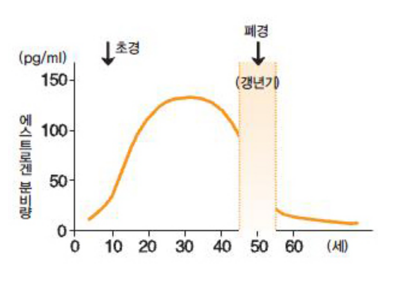 - 실제로, 여성이라면, 누구나 나이가 증가함에 따라 노화로 인해 여성호르몬의 일종인 에스트로겐(Estrogen)분비량이 급격히 감소함으로서,